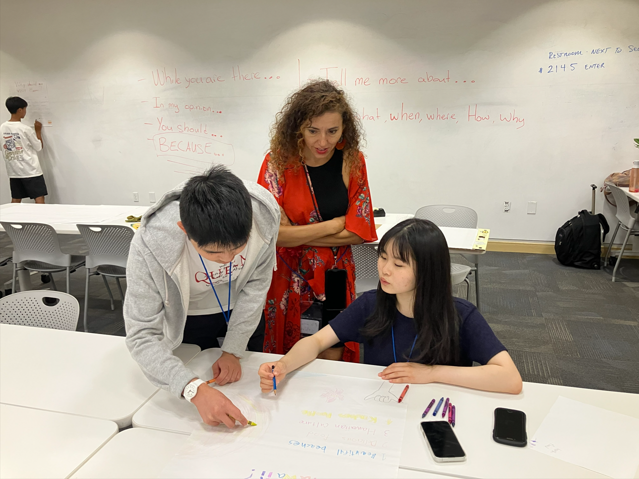 京都先端科学大学附属中学校・高等学校と連携。探究学習の成果を英語でプレゼンテーションするなど、グローバルな学びのカリキュラムをつくる活動に2022年度より参加しています。