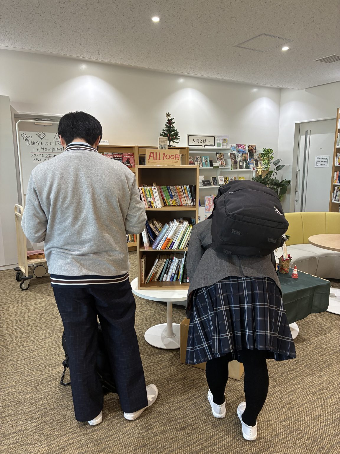 「今はよくわからないけど、いつか使えるかもしれない!」と言って経営学の本を手に取る生徒や、来室してから古本市をやっていることを知り、走ってお財布を取りに行き息を切らせて7階まで駆け上がって大喜びで本を吟味する生徒(そんなに興奮する?)などがいて、私達も盛況ぶりに大変嬉しくなりました。そんな私は、横で生徒たちに「これ私が持ってきたんだよ」「私の持ってきた本が全然売れなくて…」などと言ったりして普通にうるさがられたりしていました。