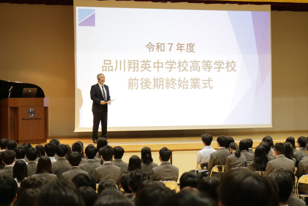 終始業式では、柴田校長より「20年後の生徒の姿」をテーマにお話がありました。 その後、表彰が行われました。 はじめに、コンテナに荷物を積み込むスライドを用いて、「積み込みの順番が大切である」という例えから、頭の良さや偏差...