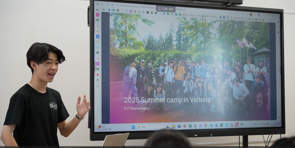さらに、カナダ・アメリカ・ハワイでのイングリッシュサマーキャンプ報告会では、生徒たちが全編英語で堂々と発表し、海外での経験や成長を力強く伝えました。