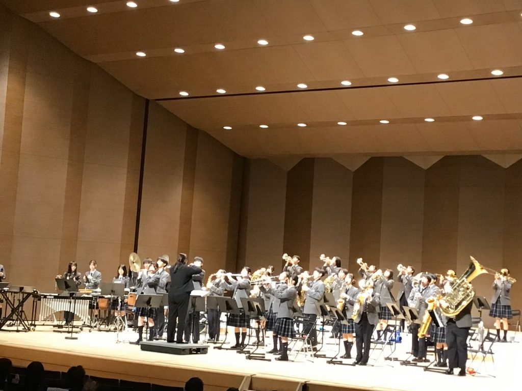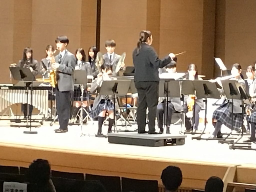 この催しは区内の小学生・中学生・高校生・大学生・社会人によるコラボレーションコンサートです。ステージではディズニーの名曲メドレーと吹奏楽の定番『宝島』を演奏しました。会場のみなさまにも手拍子で盛り上げていただき、アルトサックスのソロや金管、打楽器のパートソロではひときわ大きな拍手をいただきました。