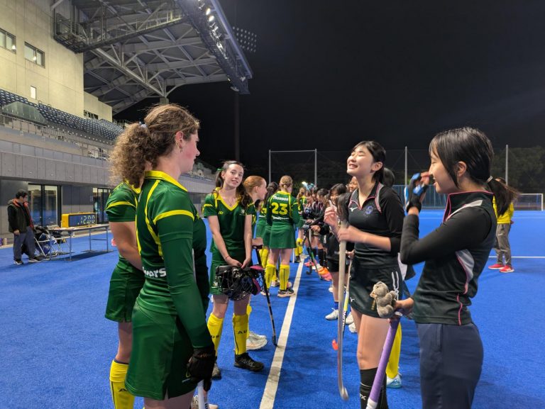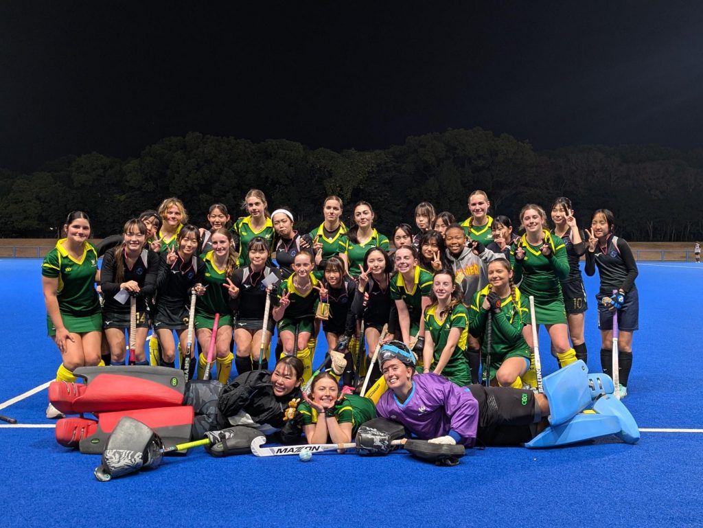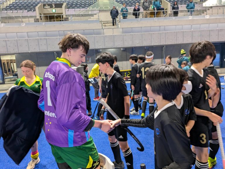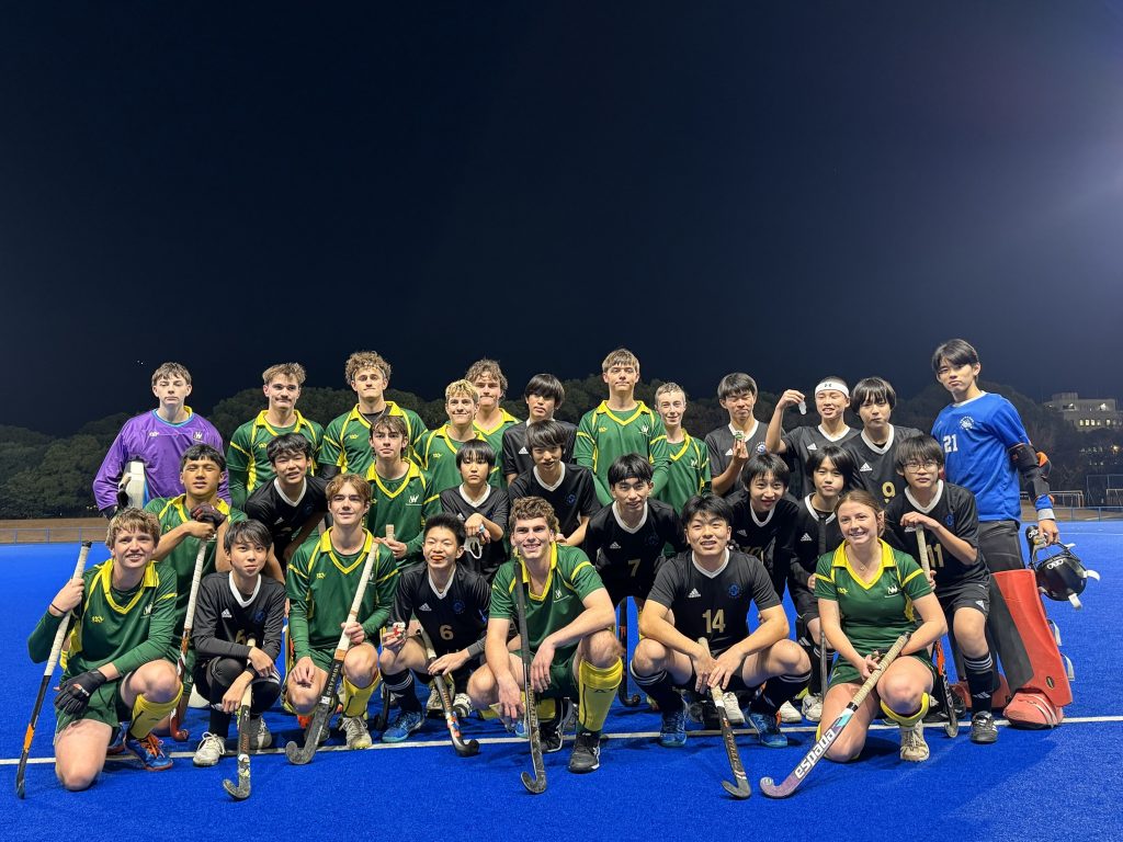 12月10日(水)、大井ホッケー場にてオーストラリアの高校生チームと練習試合を行いました。今回の試合は、東京ホッケー協会の方からお声がけいただき、実現したものです。 海外チームとの対戦は普段なかなか経験できないため、会場へ向かう生徒たちはどこかそわそわし、緊張した様子でした。試合が始まると、生徒たちは相手選手の体格差に驚きながらも、果敢にプレーをしていました。慣れ親しんだ会場でありながら、相手が海外チームというだけで雰囲気は国際色豊かになり、生徒たちの表情は、いつも以上に生き生きとしていました。