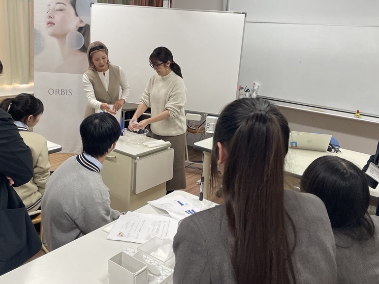 今回は、本校と同じ品川区にあるスキンケアブランドのオルビス株式会社様にご協力いただき、放課後の時間に希望する高校生を対象としたスキンケアレッスンを実施しました。