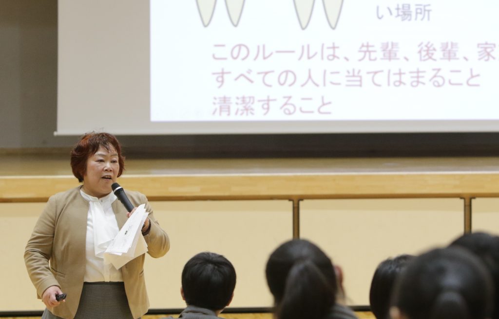 事前には「思春期と反抗期の違い」などの質問も寄せられ、生徒は自分事として講演に向き合っていました。講演ではプライベートゾーンの考え方を学び、「自分の大切な領域を守ること」と「相手の領域を尊重すること」を改めて確認しました。また、心身が揺れやすい時期ほど生活習慣が土台になることにも触れ、教員からの普段の声かけと合わせて、十分な睡眠・朝食の大切さを再認識する機会となりました。