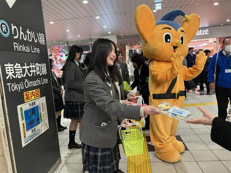 昨年6月に続き、1月16日(金)に本校ホッケー部および生徒会の生徒によって、JR大井町駅前にて大井警察署主催の「痴漢撲滅キャンペーン」に参加しました。 生徒たちは、緊張しながらも、駅の利用者の方々に「よろしくお願いします!」と元気に声をかけながら、痴漢防止の啓発チラシを配布し、痴漢撲滅を呼びかけていきました。 学校内だけでは体験できない内容で、最初は緊張しながらでしたが、最後にはみんなが笑顔で通行人の方にチラシを渡せるようになっていました。 入試などの重要な行事が控える季節に、痴漢のような犯罪が増えることを警察の方に伺い、今回の活動で生徒たちは「防犯の重要性」や「社会での課題」と主体的に向き合う姿勢を学び、地域と連携していくことで、犯罪を減らし、社会を良くしていくことができることを実感することができました。 本校では、教室内の授業だけでなく、このような社会とのつながりや貢献活動を通して、生徒一人一人の自主的な社会への貢献と社会的役割を果たせるような教育を進めてまいります。