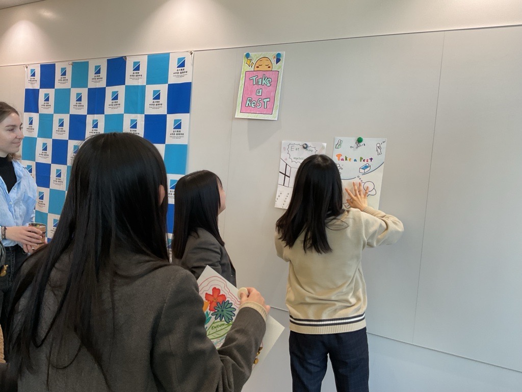 最後には、Sofia氏・Iulia氏より “Thank you for making art with us!” との言葉が贈られました。その言葉を受け、生徒たちはこれまでの活動を振り返りながら、共に学んだ時間の充実と意義を改めて実感している様子でした。会場は終始あたたかな雰囲気に包まれ、互いへの感謝と達成感が感じられる中で、全4回にわたるワークショップは無事に終了いたしました。